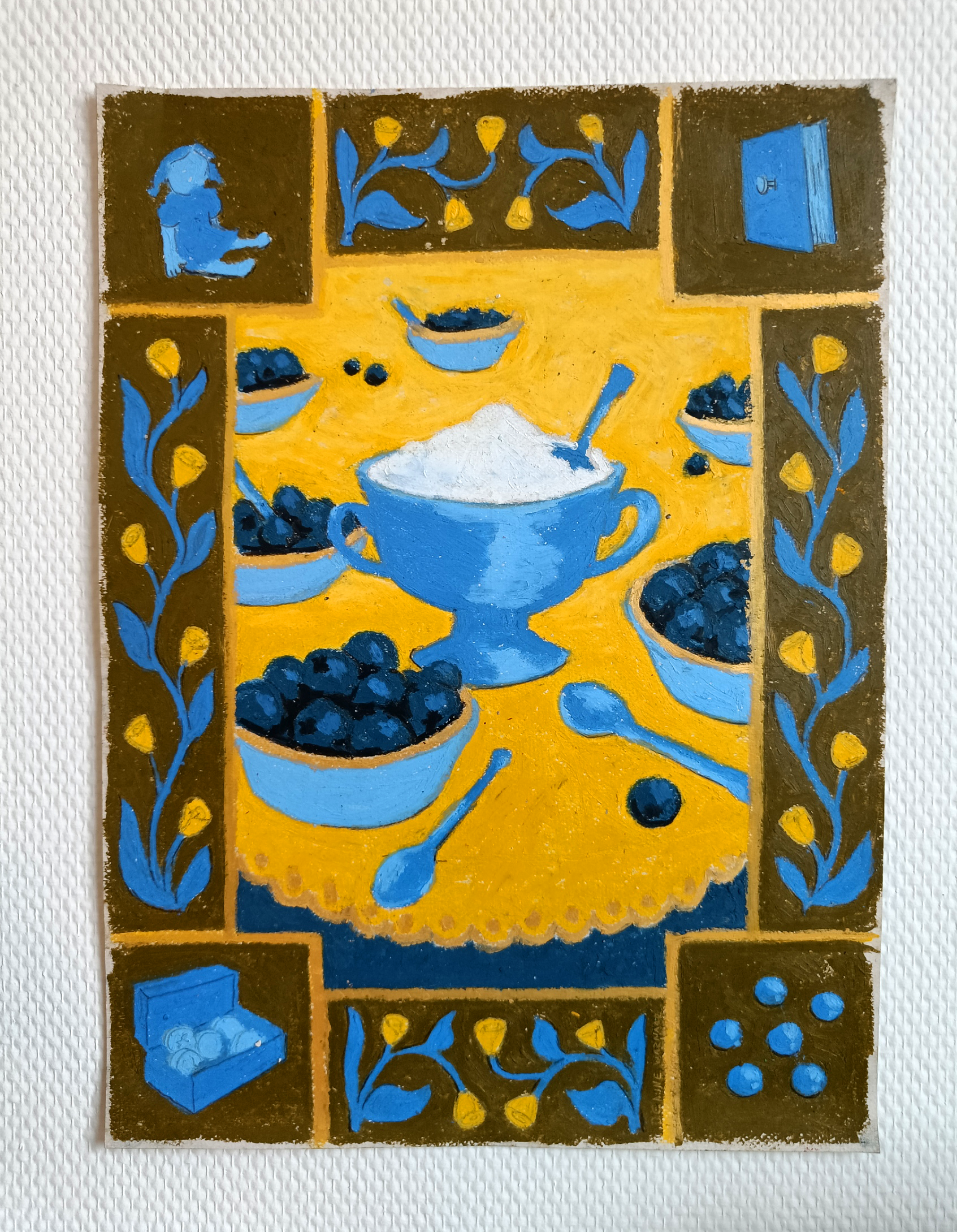 Oil pastel and coloured pencil on paper.